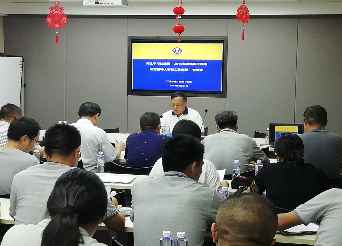 8月21日晚,七处召开会议,重点学习、传达、贯彻市住建局“防范重特大事故工作部署会”以及公司《“防风险、保安全、迎大庆”特别防护期安全生产工作议案》精神,研究部署当前安全生产工作。工程处主任室全体成员、各科室、各项目负责人、项目工程师以及分包单位负责人等参加了会议。