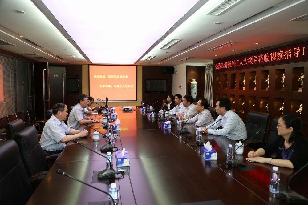 5月13日上午,在深圳、广州两地考察学习当地立法工作期间,扬州市人大常委会党组副书记、副主任陈卫庆、副主任王玉新、秘书长林正玉以及市人大法制委领导一行,专程来到公司看望慰问员工,视察指导工作,受到公司总经理宗有农等领导热情欢迎。