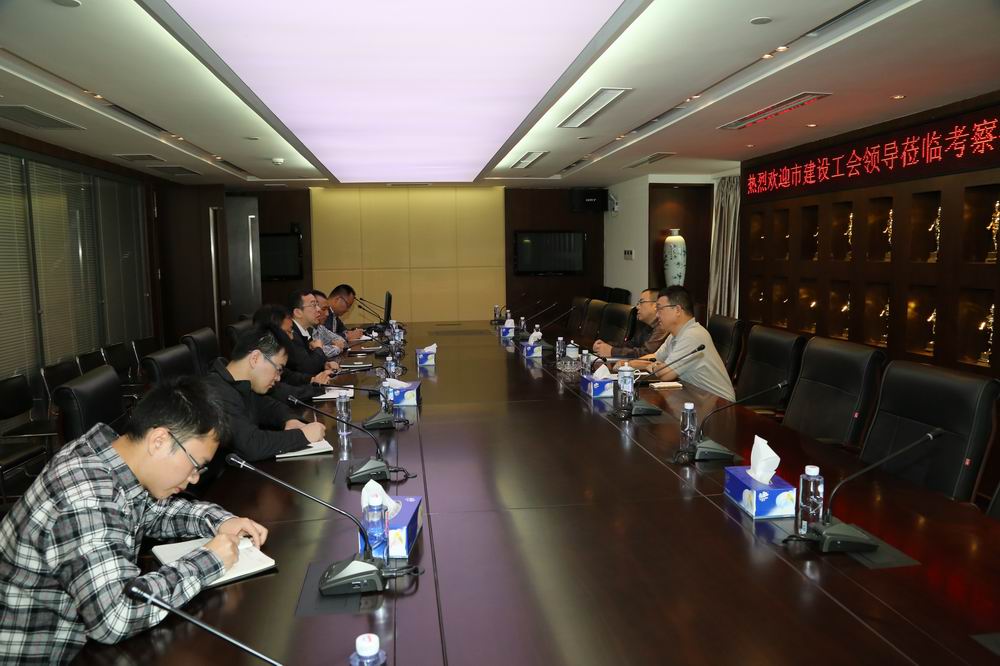 在公司会议室,当张主席一行看到公司获得的19尊鲁班金像时,啧啧称赞公司在工程质量创优上取得的斐然业绩,对江苏华建承建的多项工程如数家珍,对公司的品质信誉给予高度评价。他边座谈边了解公司的业务开拓情况、劳动用工情况以及在新技术、新工艺、新材料等方面的应用情况,对公司多年来的群团工作也给予了充分肯定,希望公司发扬传统,争创一流,取得更多高规格的奖项,当好全市建筑行业创优先锋和发展排头兵。