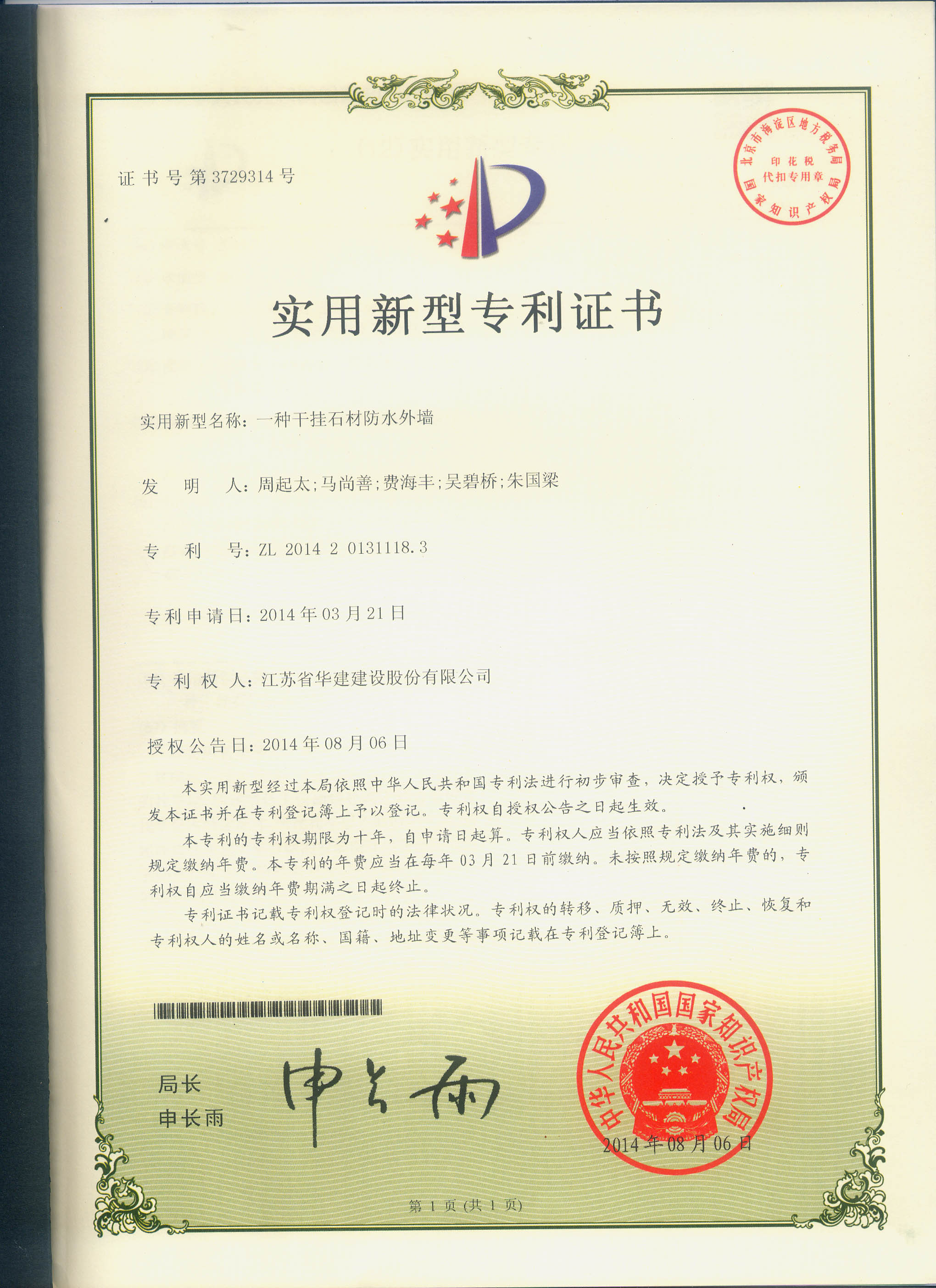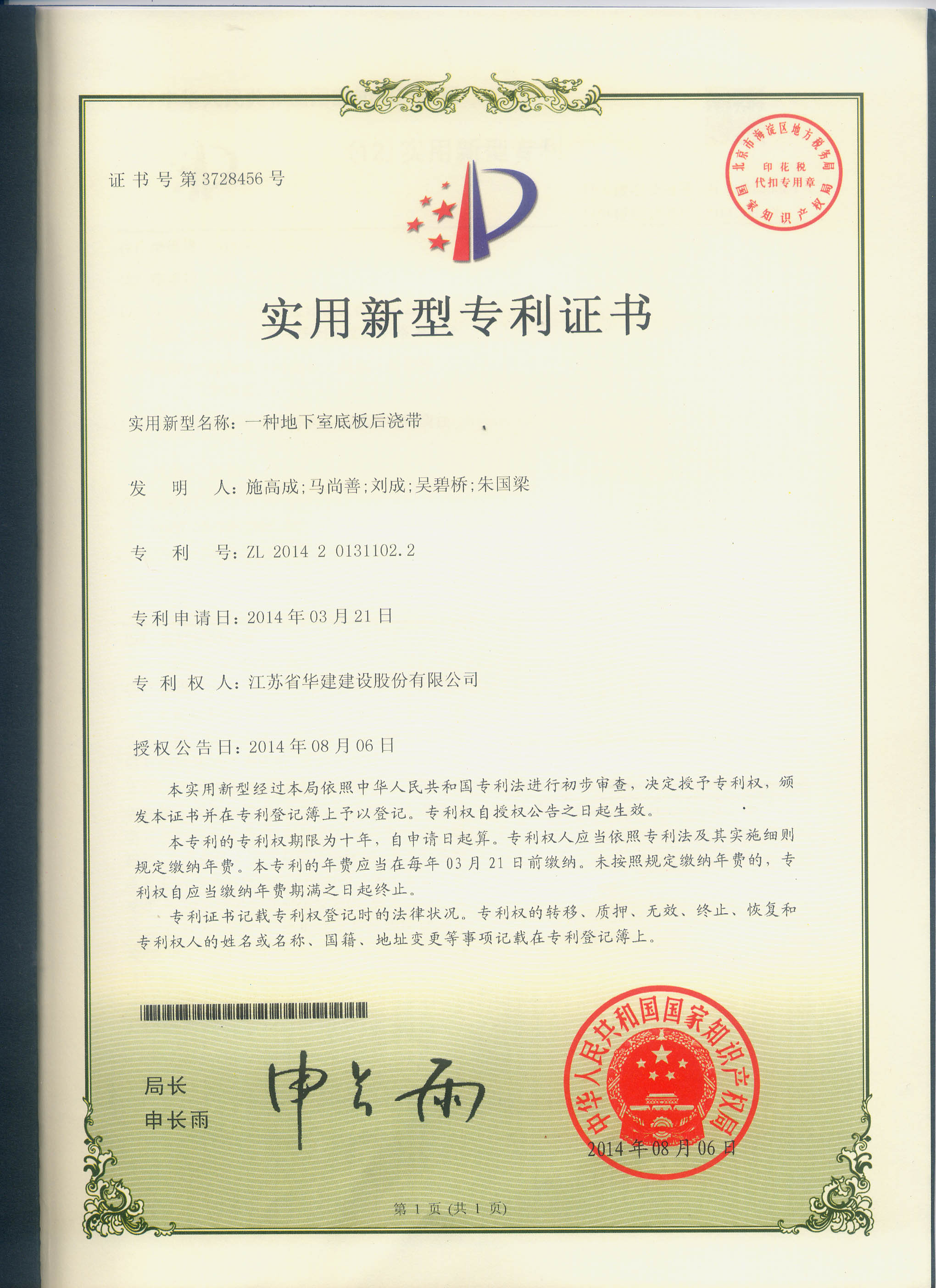 近日,从国家知识产权局传来好消息,公司新创的两项成果《一种干挂石材防水外墙》和《一种地下室底板后浇带》被认定为国家实用新型专利。至此,深圳公司历年已获得26项国家实用新型专利和2项发明专利。(技术质量处)
