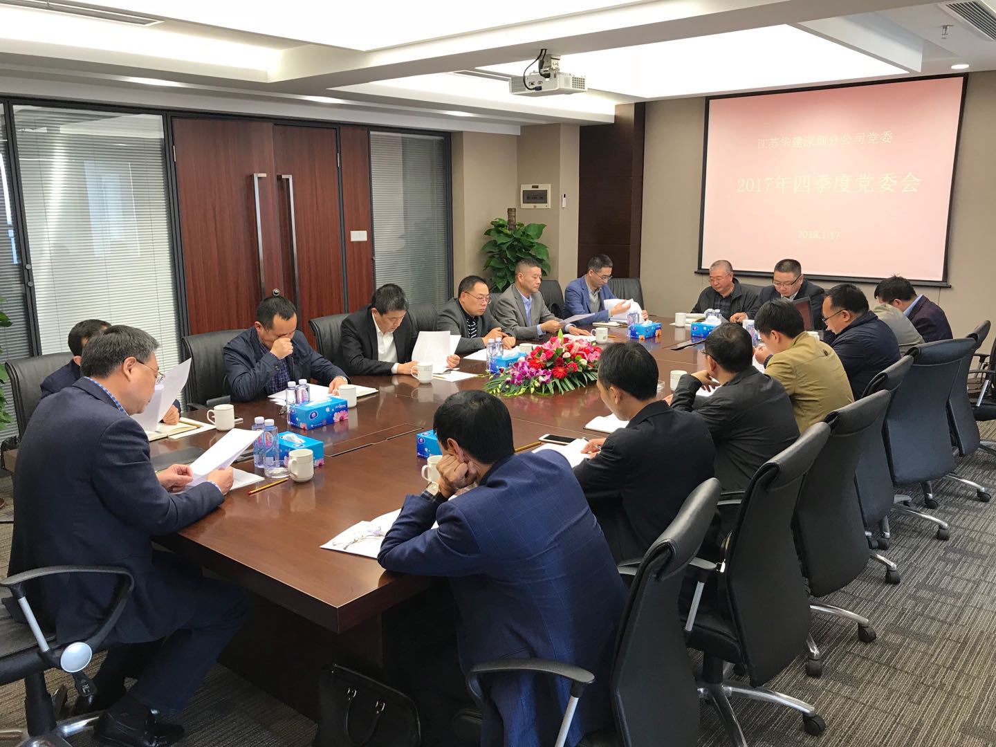 元月17日下午,公司党委在南山建工村七处会议室召开2017年度四季度党委会,公司党委委员出席会议,非党委委员列席会议。会议由公司党委书记宗有农主持。