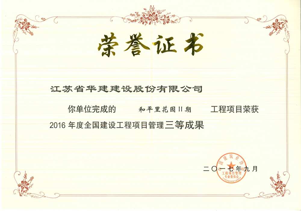 日前,我司组织申报的和平里花园Ⅱ期项目管理成果《精细化管理,标准化施工,打造优质、绿色的保障性住房精品工程》,通过中国建筑业协会协会第十二届全国项目管理成果现场发布,荣获2016年度全国建设工程项目管理成果三等奖。